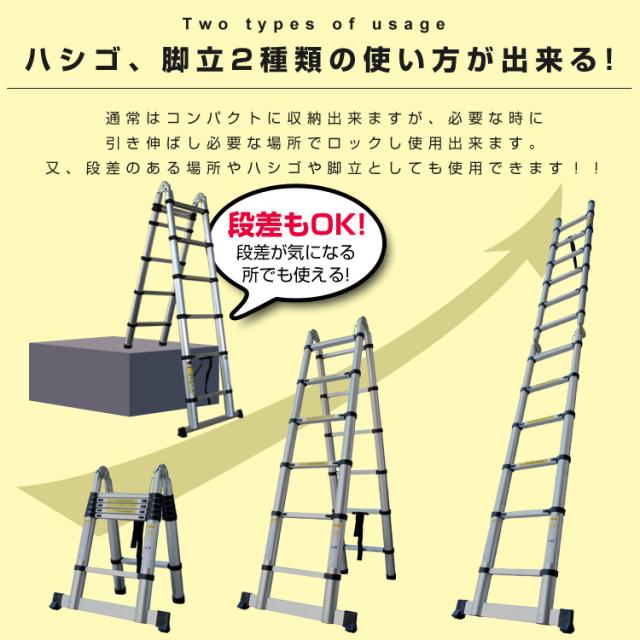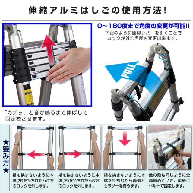 はしご 伸縮 アルミ 伸縮はしご アルミ製伸縮はしご アルミハシゴ 梯子 スーパーラダー 折りたたみ 伸縮自在 脚立 二役 踏み台 踏台 ラダー 軽量 高所作業 掃除 そうじ 雪おろし ガーデニング 作業 洗車 日曜大工 避難 敬老の日 母の日 父の日 ギフト 誕生日 プレゼント 誕生日プレゼント 結婚祝い 福袋 メンズ レディース 男性 女性 人気 おすすめ 送料無料