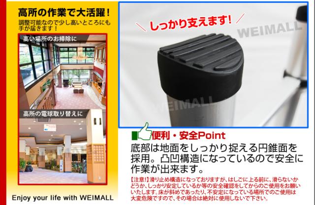 使用時には1段ずつ引き伸ばし、必要な高さでロックできます。