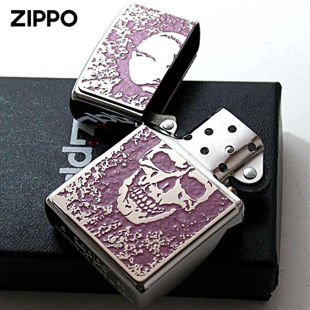 Zippo ジッポライター スカル ドクロ 骸骨 Skull ピンク #200 メタルプレート 両面加工 ニッケルメッキ 2MPP-Skull PK メール便専用商品