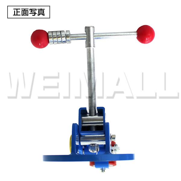 1.ホイールナットスペーサーを取り付け 2.ホイールナットで固定します。 3.爪折機の角度調整をします。 4.ハンドルで高さとローラー角度 を調整します。 (フェンダーにローラーの中心が当たるように調整してください。) 5.ヒートガン等でフェンダー周辺を暖めます。(この時、手で触って熱いくらいまで) 6.フェンダーにローラーを押し付け、爪を折っていきます。 ※ゆっくり少しづつ折っていくのがポイントです!! |
