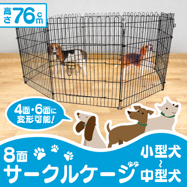 ペットサークル 8面サークル 高さ76cm ペットケージ ペットフェンス ケージ ゲージ サークル トレーニングサークル 犬用ケージ 小型犬用 中型犬用 屋内用 屋外用 室内用 犬小屋 犬 ペット ペット用品 送料無料
