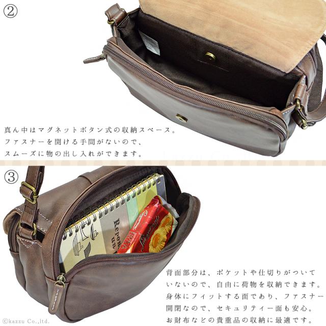 やわらかい合成皮革とくすんだゴールドの金具がアンティークな雰囲気が漂う優しいショルダーバックです。
