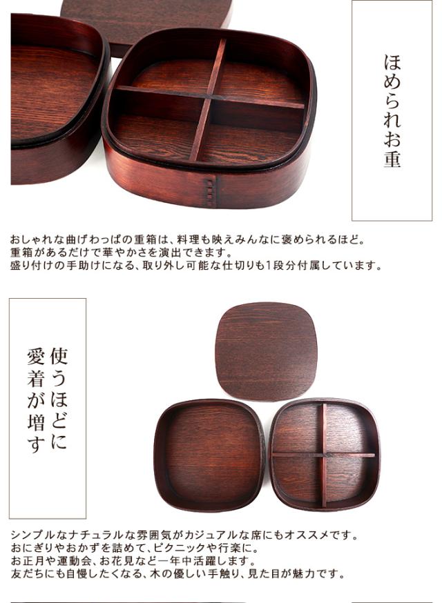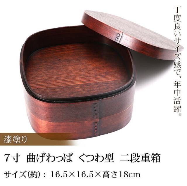 重箱 2段 7寸 曲げわっぱ 漆塗り くつわ型 二段重箱 仕切り付き 和風 木製 おせち 正月 運動会 大型 弁当箱 おしゃれ 3段 お重箱 かわいい 花見 k_name