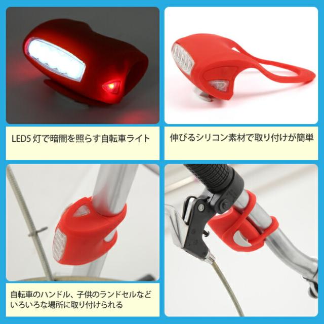 自転車ライト/LED/5灯/サイクルライト/自転車/ライト/サイクリング/マウンテンバイク/リア/サイクル/LEDライト/シリコン/フロント/懐中電灯/小型ライト/自転車ライト