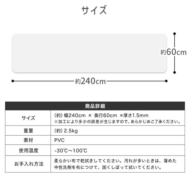 キッチンマット 240 透明 60×240cm PVC エンボス加工 クリアマット 拭ける 洗える キッチン マット クリア 防水 床暖房対応 抗菌 防カビ 厚さ1.5mm 透明マット 保護シート クリアキッチンマット フロアマット 台所 クッションマット 送料無料