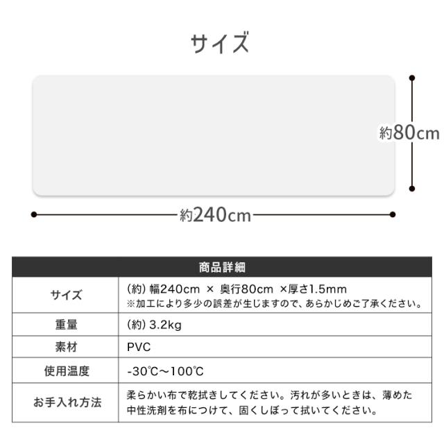 240cmの大型サイズで簡単にカットすることができるので、ダイニングテーブルや学習机の傷防止用マットとしても最適です!