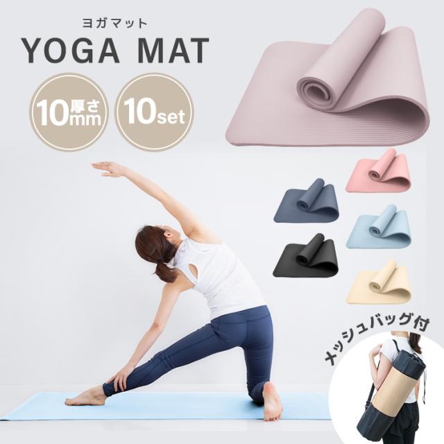 【10枚セット】 ヨガマット 10mm ケース付き すべらない トレーニングマット ストレッチマット エクササイズマット ダイエット 器具 ダイエット器具 ホットヨガマット 厚手 厚 ケース 極厚 腹筋 ピラティス マット ヨガ 筋トレ エクササイズ おしゃれ
