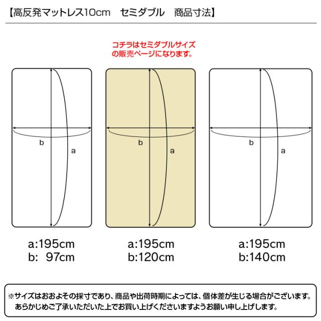 | サイズ | (約)幅120cm×長さ195cm×厚み10cm(セミダブルサイズ) |