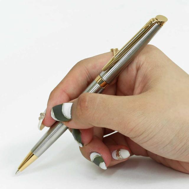 シャツの胸ポケットや手帳に収まり、細身でありながら程よい重量:感で書き味も優れています。