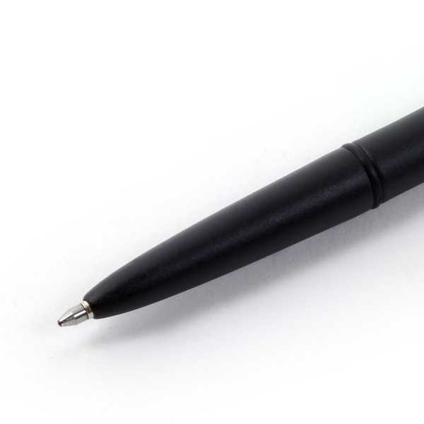 従来のボールペンは重力でインクがボールの先へと流れていきますが、フィッシャースペースペンではリフィル内部に封入された窒素ガスの圧力によってインクがボールの先へ移っていきます。そのため上向きにして筆記することが可能で、無重力状態、水中やマイナス45℃から200℃までの気温においてもスムーズに筆記することが可能です。