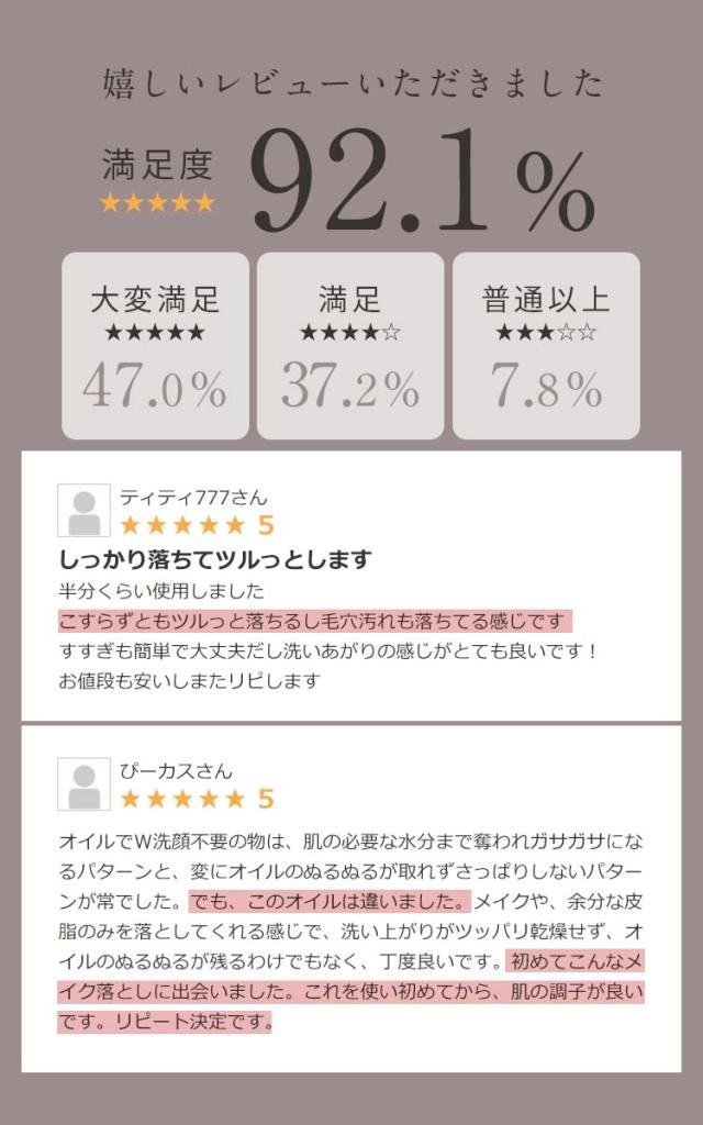 - 今まで使っていたクレンジングより汚れ落ちも良く、肌もきれいになった気がします。