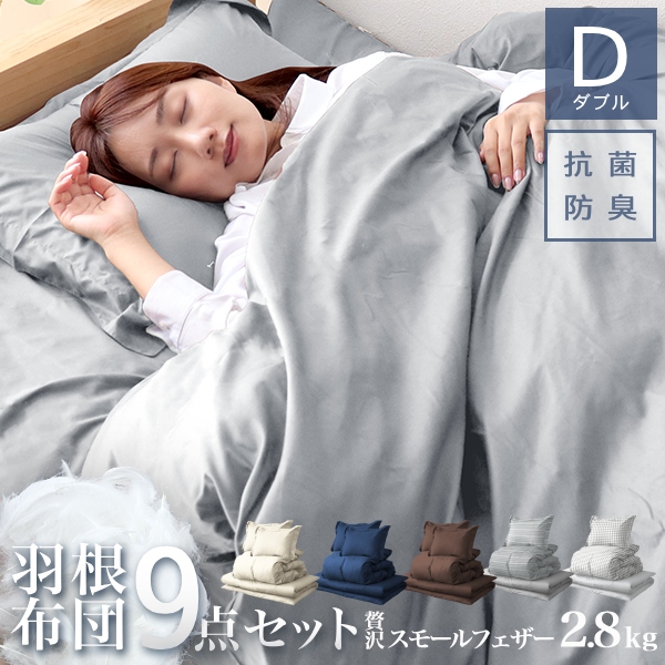 布団 寝具 9点セット ダブル 布団セット 贅沢 スモールフェザー 100% 洗える 羽根布団 抗菌 防臭 認定工場生産 防カビ 布団 シングル ふとんセット ふとん フェザー 羽根布団セット 羽根掛け布団 敷布団 組布団 掛け布団 敷き布団 洗える布団 枕 新生活 寝具セット 送料無料