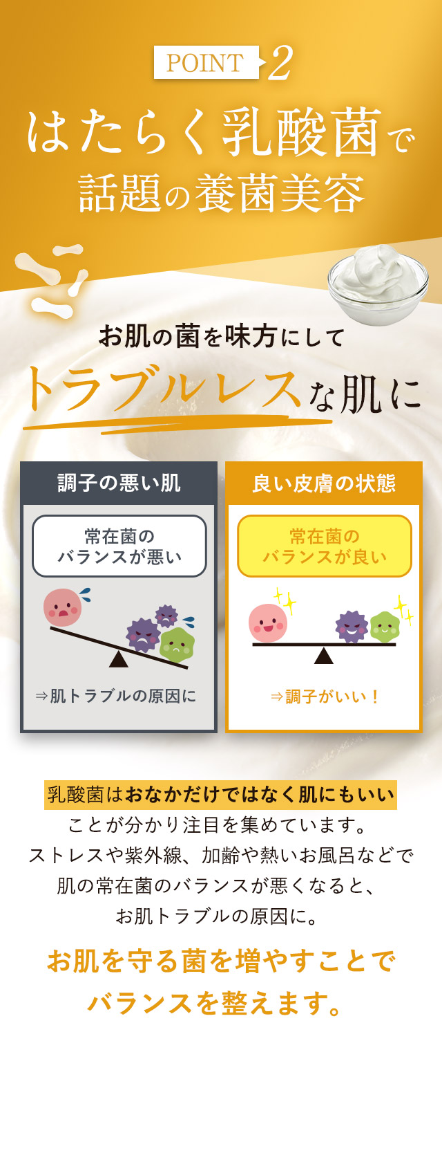 乳酸菌とビタミンC・A・Eを配合!更にソフトスクラブ配合で汚れを吸着&除去!