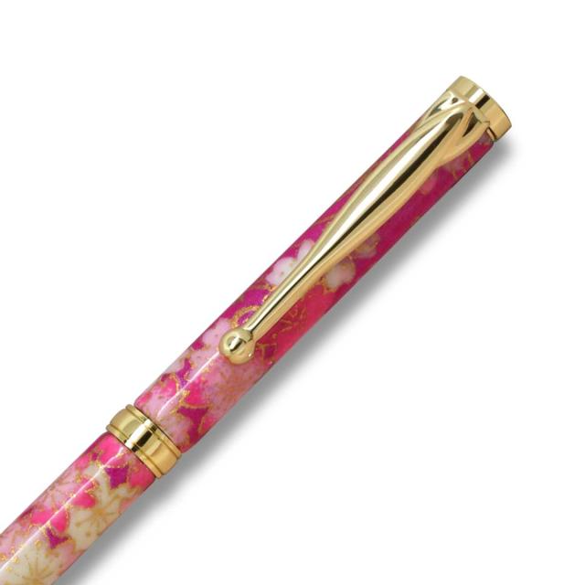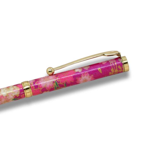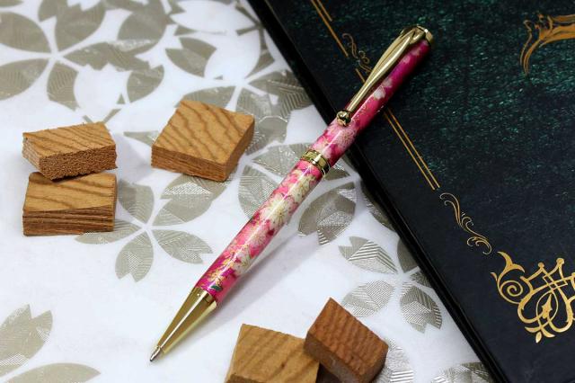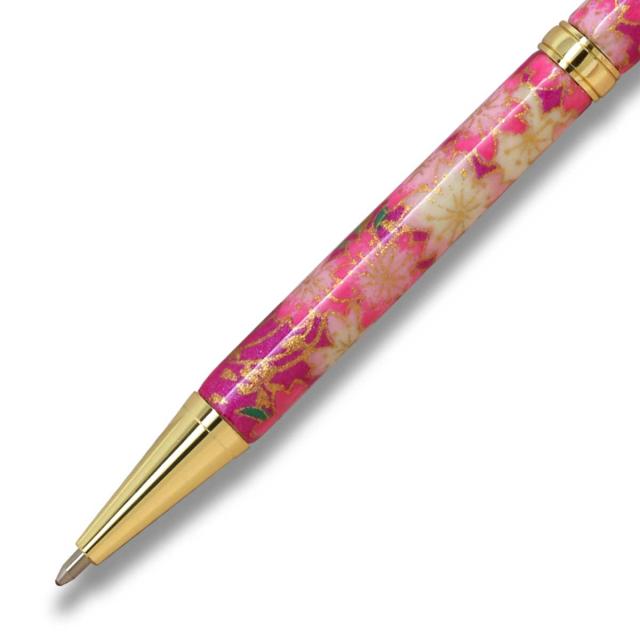 清流長良川の水で漉かれた和紙は、奈良時代より日本国内で親しまれる伝統技法であり、美しい友禅柄は日本の心温まる文化です。美濃和紙にシルク印刷したボールペンで伝統的な友禅独特の質感を残し樹脂で包み込みました。