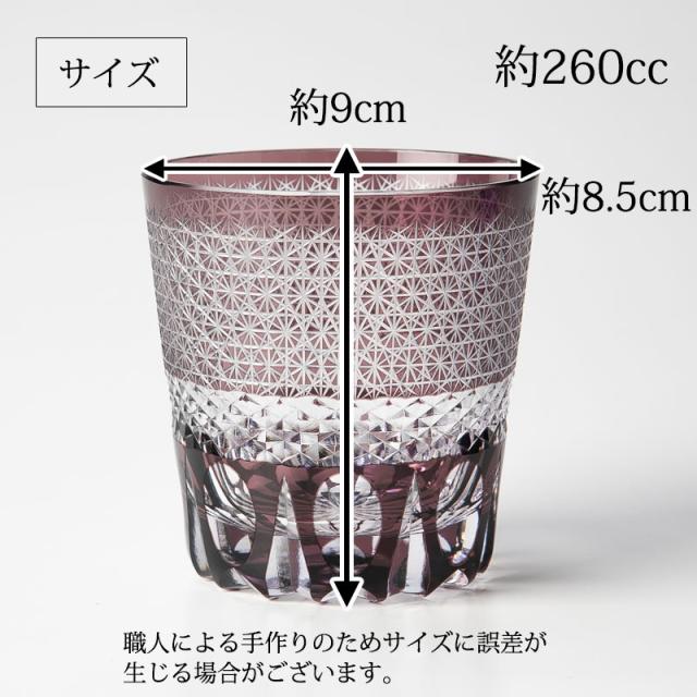 予めご了承くださいませ。切子タンブラー 切子グラス キリコ パープル 紫 おしゃれ 単品 切子オールド 260cc 来客用 ガラス コップ ビール お酒 カットグラス 食洗機対応