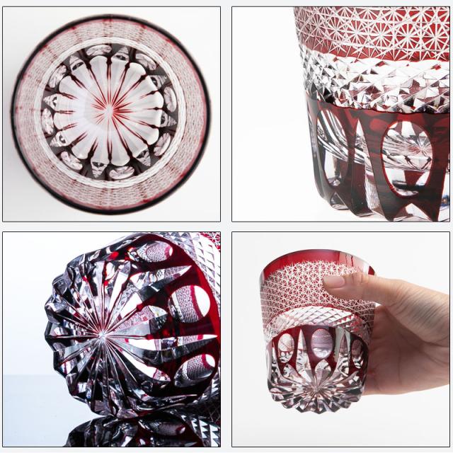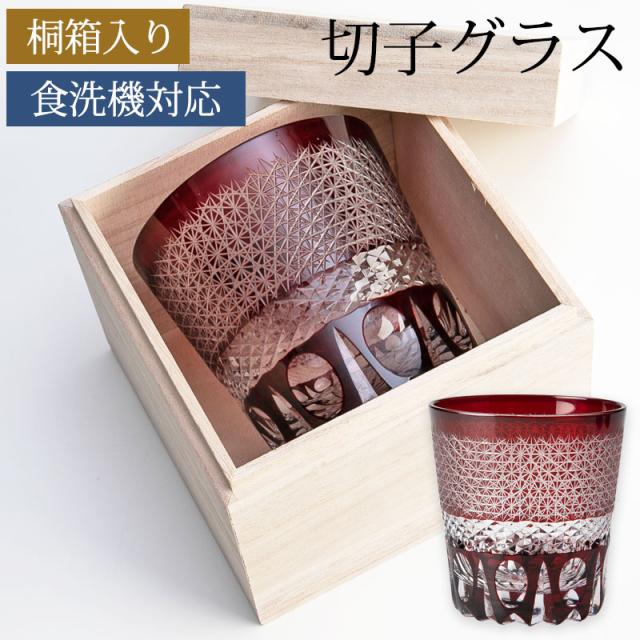 切子グラス 桐箱入り オールドグラス レッド 赤 おしゃれ 菊つなぎ ロックグラス タンブラー グラス コップ 食洗機対応 送料無料 結婚祝い プレゼント ギフト 贈り物 酒器 焼酎 退職祝い 誕生日 お祝い 記念品 ギフトBOX k_name