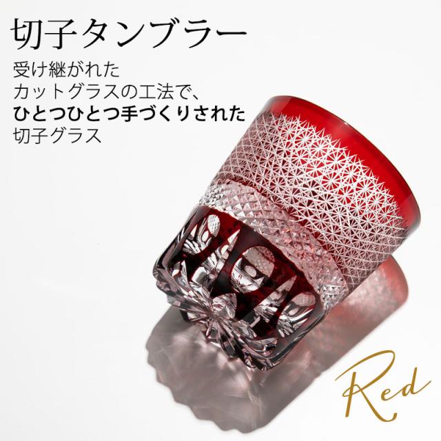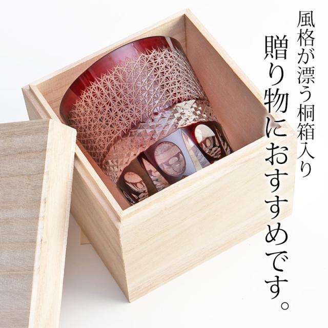 [内容]単品(1個) 桐箱入り切子グラス 桐箱入り オールドグラス レッド 赤 おしゃれ 菊つなぎ ロックグラス タンブラー グラス コップ 食洗機対応 送料無料 結婚祝い プレゼント ギフト 贈り物 酒器 焼酎 退職祝い 誕生日 お祝い 記念品 ギフトBOX