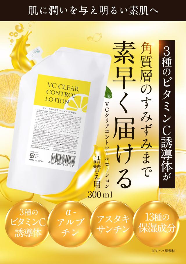 【詰め替え用】化粧水 大容量 ローション 浸透 さっぱり 保湿 毛穴ケア ビタミンC誘導体 300ml 無添加 プラセンタ プロテオグリカン アスタキサンチン 透明感 温泉水 送料無料 大人気 おすすめ VCクリア apps