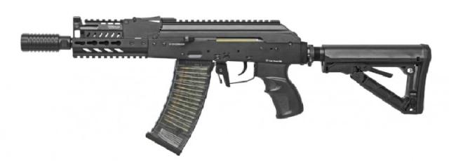トップに20mmレールを装着し、アウターをショート化、ノベスキー風のハイダーを装備、ハンドガードはKeymodハンドガード、フォールディング伸縮ストックを装備した近代風AKの近接戦闘モデルだ。