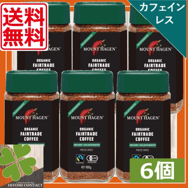 【送料無料】マウント ハーゲン オーガニック カフェインレスインスタントコーヒー100g ×6個 カフェインレス デカフェ ディカフェ 有機コーヒー豆 おうち時間 リラックスタイム