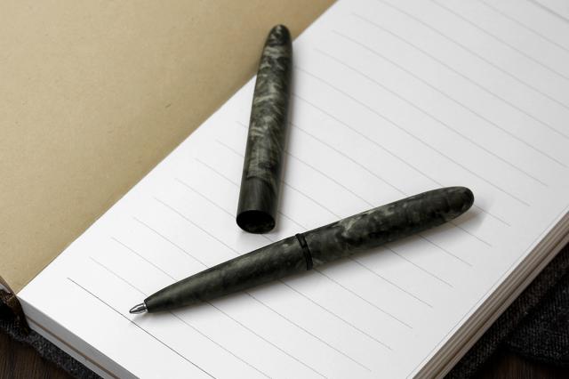 従来のボールペンは重力でインクがボールの先へと流れていきますが、フィッシャースペースペンではリフィル内部に封入された窒素ガスの圧力によってインクがボールの先へ移っていきます。そのため上向きにして筆記することが可能で、無重力状態、水中やマイナス45℃から200℃までの気温においてもスムーズに筆記することが可能です。