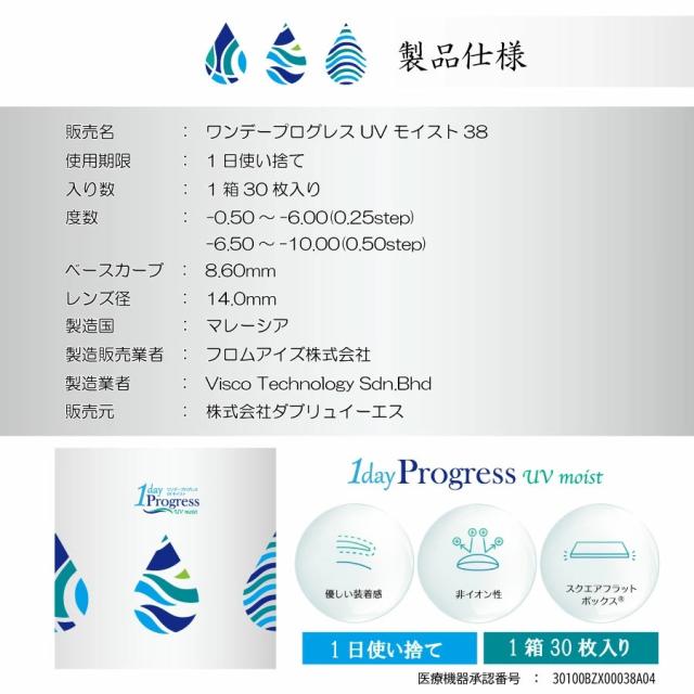 (送料無料)コンタクトレンズ ワンデー ワンデープログレスUVモイスト【30枚入】 ×1箱 ワンデー ソフトコンタクトレンズ 1day progress 1000円 安い コンタクト 30枚 最安 激安