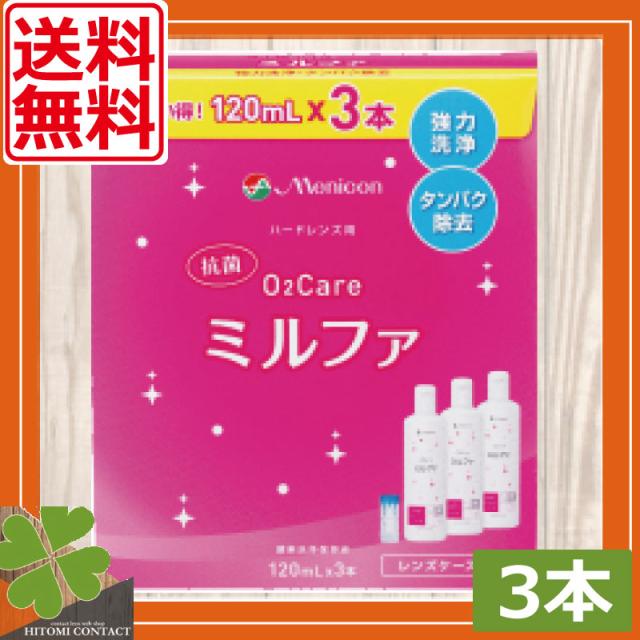 送料無料 メニコン 抗菌O2ケアミルファ(120ml×3本+ケース付)×1箱 ハード O2レンズ