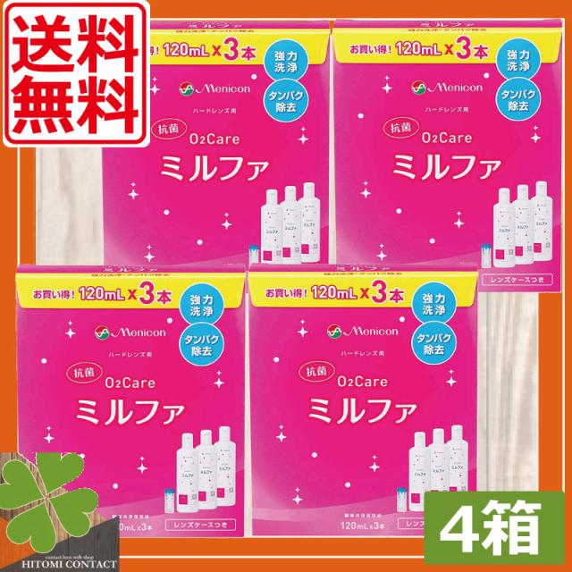 送料無料 メニコン 抗菌O2ケアミルファ(120ml×3本+ケース付)×7箱 ハード O2レンズ