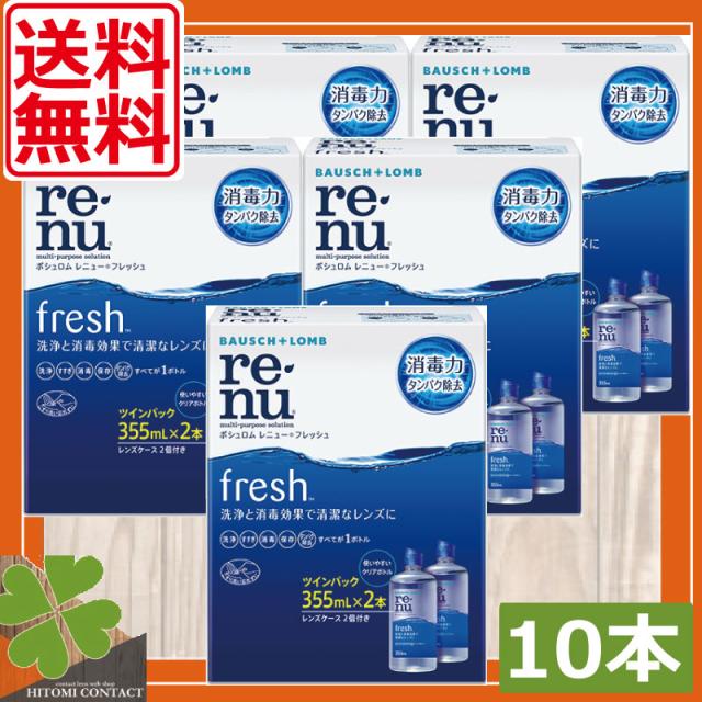 ボシュロム レニュー フレッシュ355ml×10本、ケース付 ソフトコンタクト 洗浄液 レニュー コンタクト