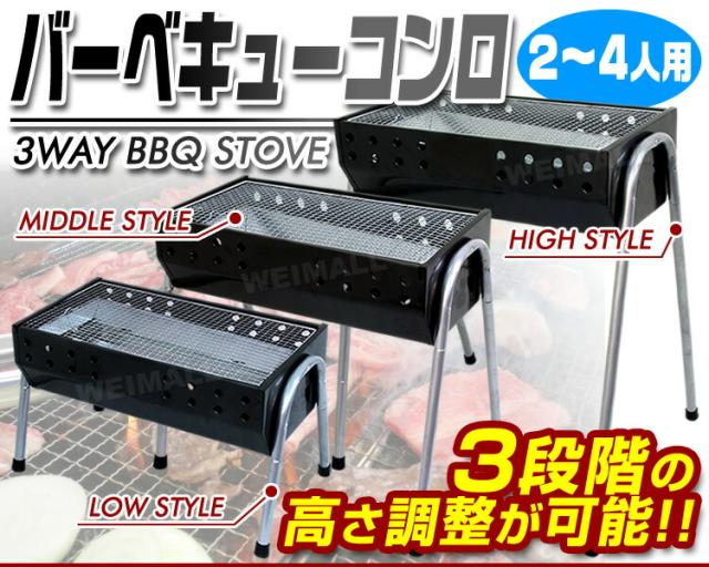 バーベキューコンロ 54cm 2〜4人用 バーベキューグリル BBQスタンド バーベキュースタンド BBQ バーベキュー コンロ グリル 焚火台 3段階調節機能付き バーベキュー用品 キャンプ用品 アウトドア 送料無料 MERMONT WEIMALL
