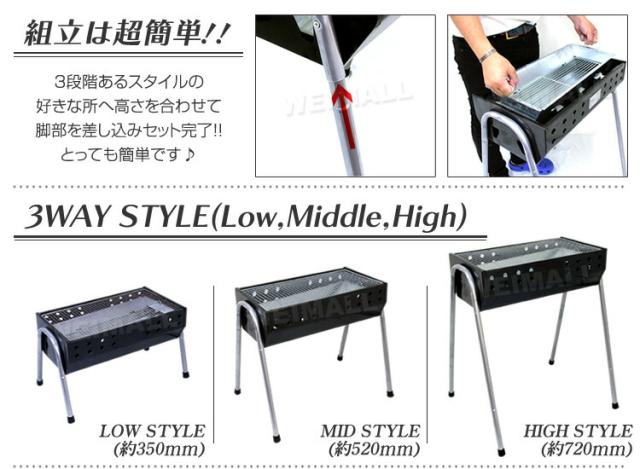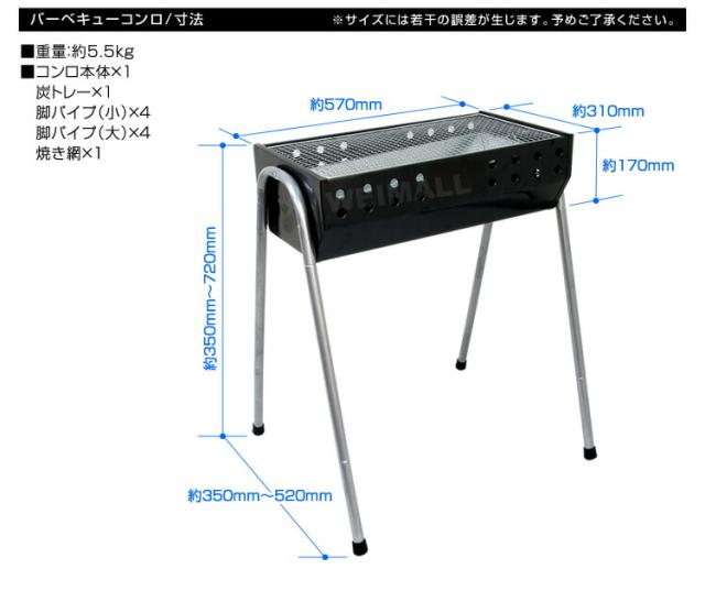 | 内容 | 本体 バーベキュー網 炭トレー 脚(ジョイント長4本、ジョイント短4本) |