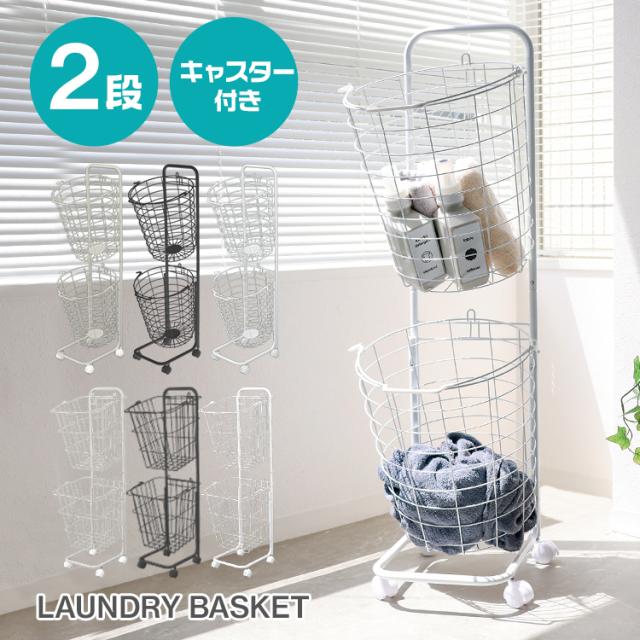 ランドリーバスケット ランドリーワゴン 2段 洗濯カゴ 丸型 角型 キャスター付き ランドリーラック かご カゴ 脱衣かご 洗濯かご ラック ランドリー収納 洗濯物入れ おしゃれ シンプル 北欧 一人暮らし 新生活 送料無料