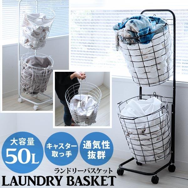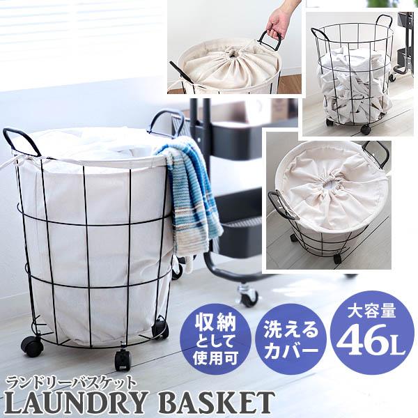 ランドリーバスケット ランドリーワゴン ワイヤー キャスター付き おしゃれ 46L 大容量 ワイヤーバスケット ランドリー 洗濯物入れ かご 洗濯かご 脱衣かご ランドリー収納 ランドリーボックス 収納 シンプル 一人暮らし 新生活