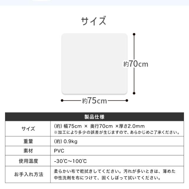 | サイズ | (約)70×75cm(厚さ2mm) |