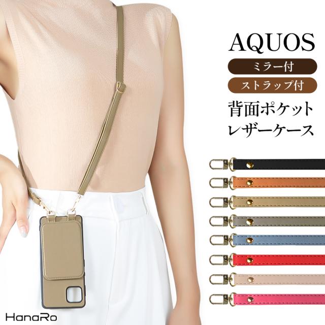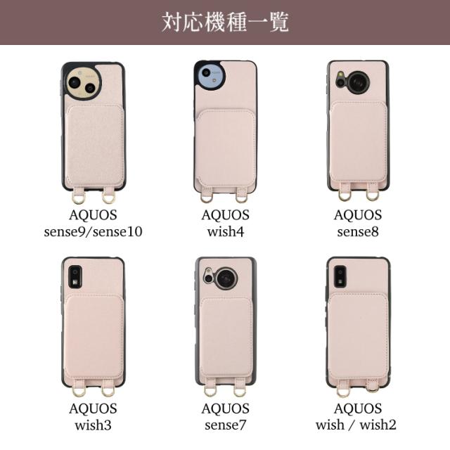 AQUOS wish4 ケース ストラップセット sense9 sense10 sense8 スマホショルダー スマホケース wish3 sense7 sense6s ミラー付き wish2 wish sense6 背面手帳 カバー アクオス センス8 センス7 ウィッシュ 携帯 AQUOSケース 背面 手帳 鏡 スマホカバー ショルダー ストラップ