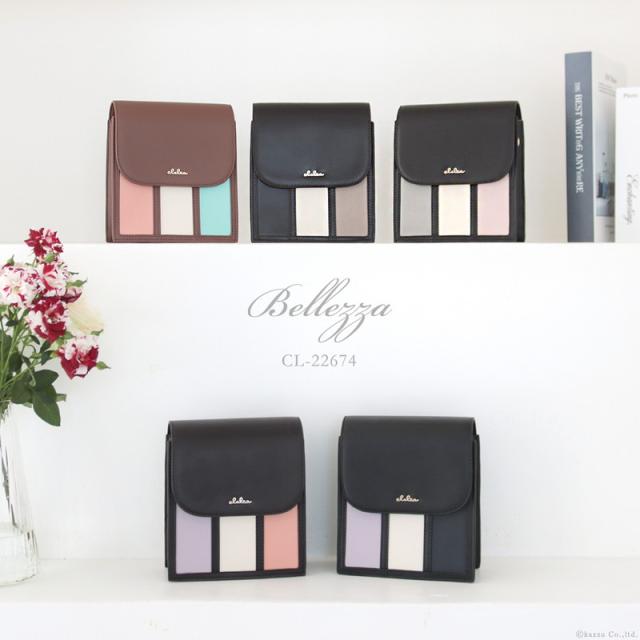【ドラマ衣装協力】ショルダーバッグ レディース Clelia クレリア Bellezza ベレッサ ストライプ カラフル スクエア フラップ コンパクト【CL-22674】 ブランド 人気 スマホショルダー スマホポーチ