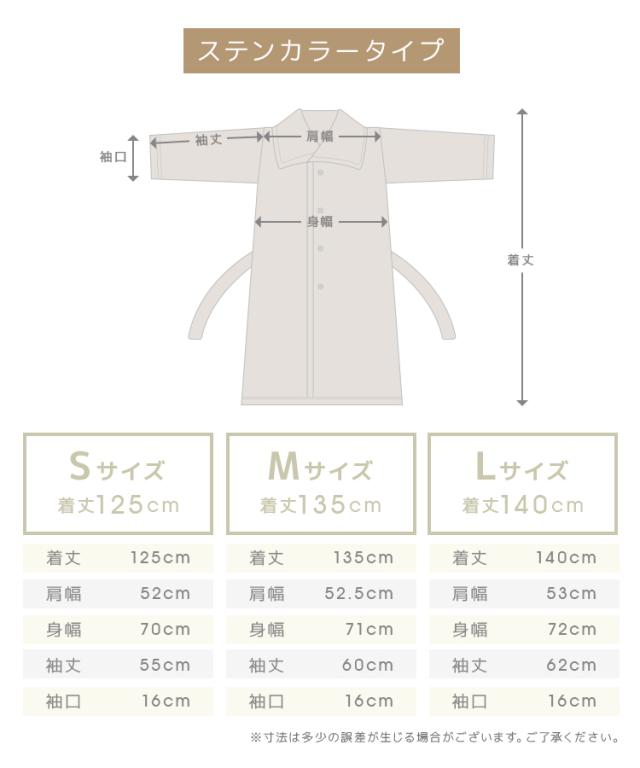 | サイズ | S:(約)着丈125cm×袖丈55cm×身幅70cm M:(約)着丈135cm×袖丈60cm×身幅71cm L:(約)着丈140cm×袖丈62cm×身幅72cm |