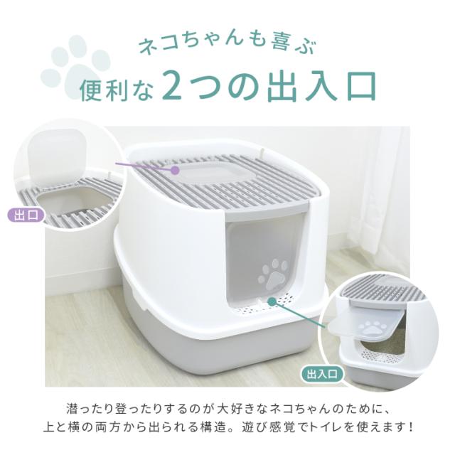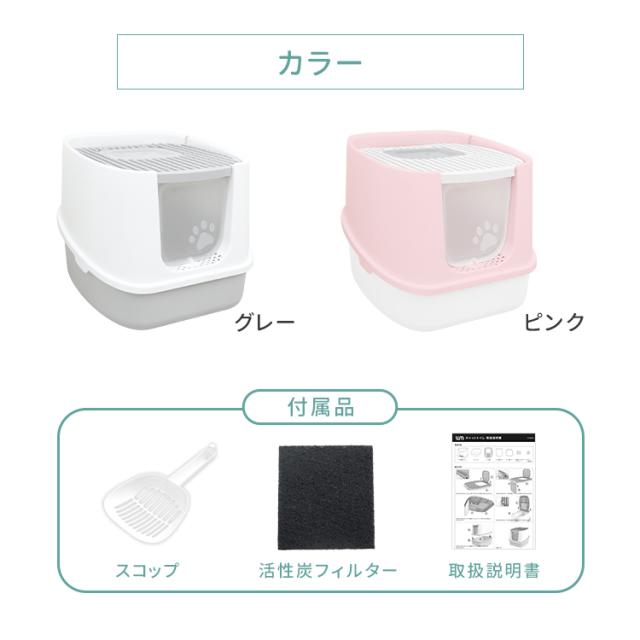 【送料無料】キャットトイレ 猫用トイレ 猫用トイレ フルカバー 折りたたみ 大きめ 大型 猫砂 飛び散り防止 スコップ付き ニオイ防止 消臭フィルター1枚付 活性炭フィルター 別売 掃除 清潔 お手入れ 脱臭 トイレ容器 送料無料