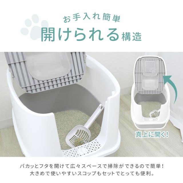 ニオイが広がりにくい「扉付き」の猫用トイレです。