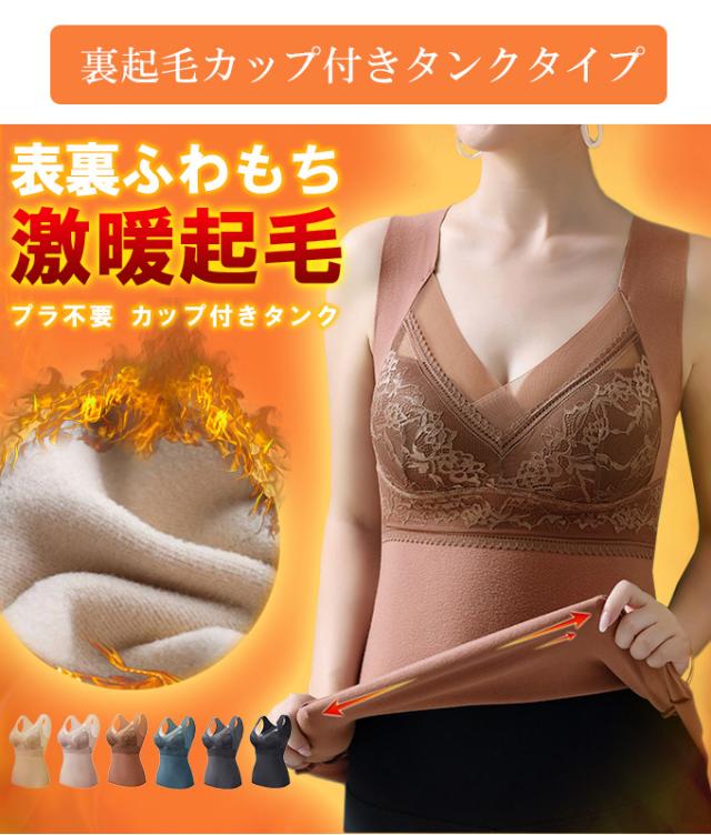 3枚購入する&クーポン利用で1枚790円 ふわもち起毛 カップ付ブラ レース インナー トップス シームレス 軽量 薄手 裏起毛タンクトップ ふわもち起毛 あったかインナー ノンワイヤー 大きいサイズ レディース 防寒 暖か 伸縮性 冷え防止