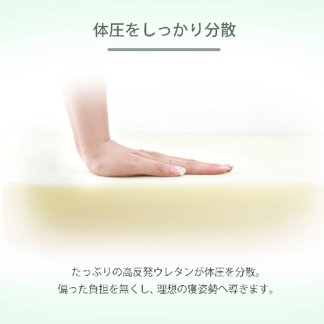 柔らかいマットレスとは違い、身体の沈み込みを軽減した腰に優しい寝心地です。