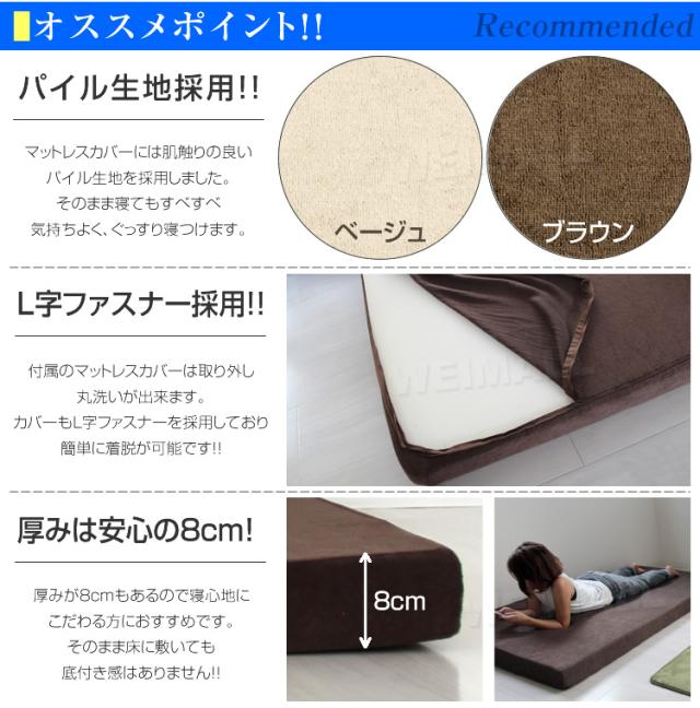 厚みが8cmあるので、そのまま敷いてもOK!マットレスや敷き布団の上に敷けばOK!