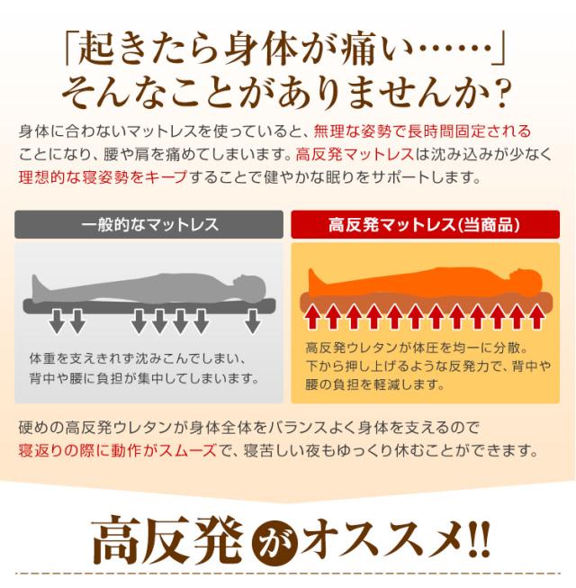 高反発マットレスは下からの跳ね返りの力により、沈み込みが少ないのが特徴です。