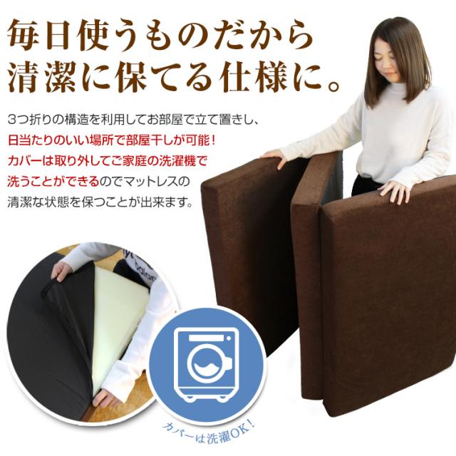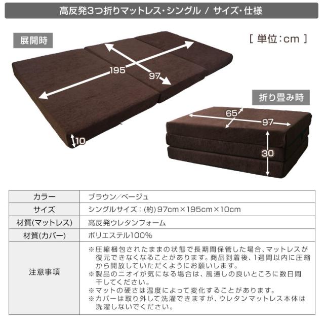| サイズ | (約)幅97cm×長さ195cm×厚さ10cm(シングルサイズ) ※折りたたみ時:(約)幅97cm×長さ65cm×厚さ30cm |