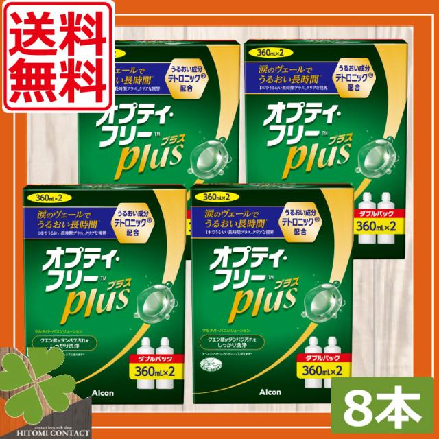 送料無料オプティフリープラス360ml×8本、レンズケース×8 ソフトコンタクト 洗浄液 オプティフリー コンタクト