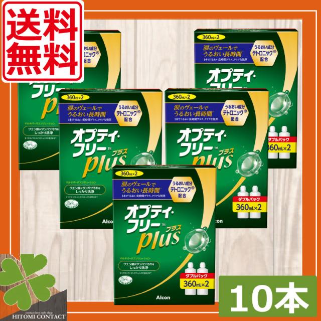 送料無料オプティフリープラス360ml×10本、レンズケース×10 ソフトコンタクト 洗浄液 オプティフリー コンタクト
