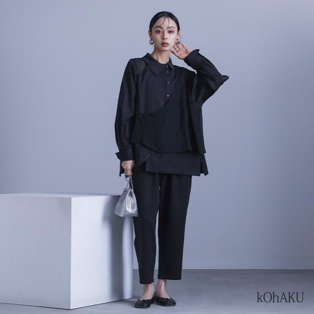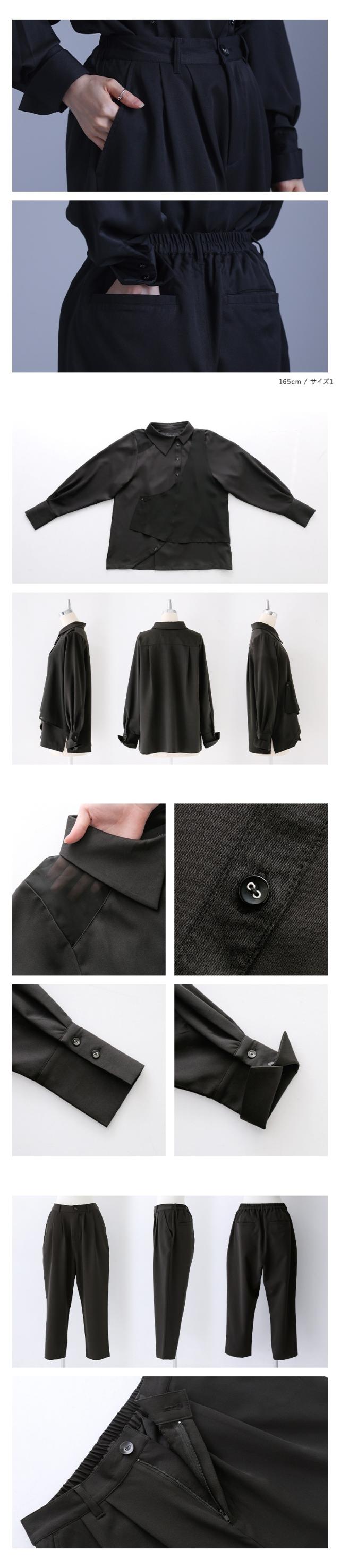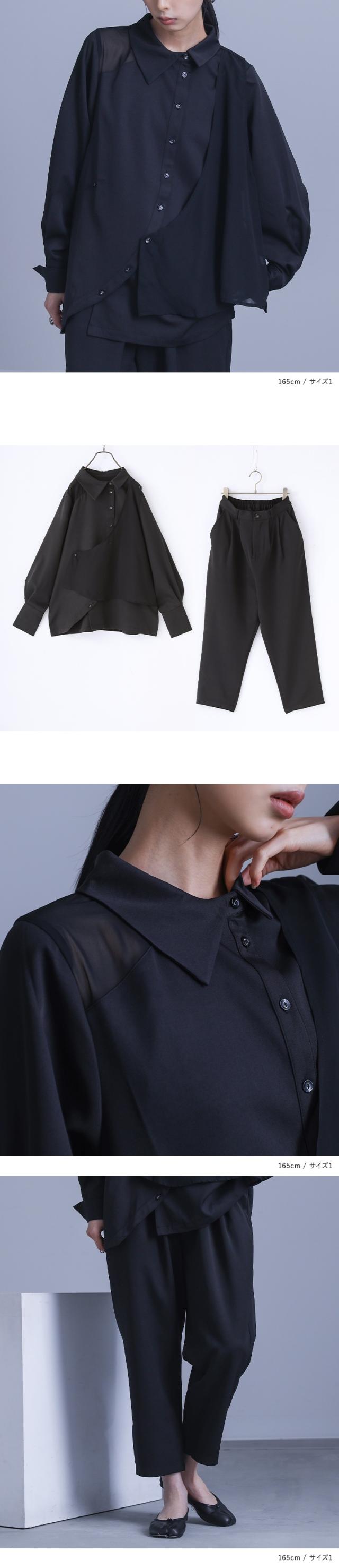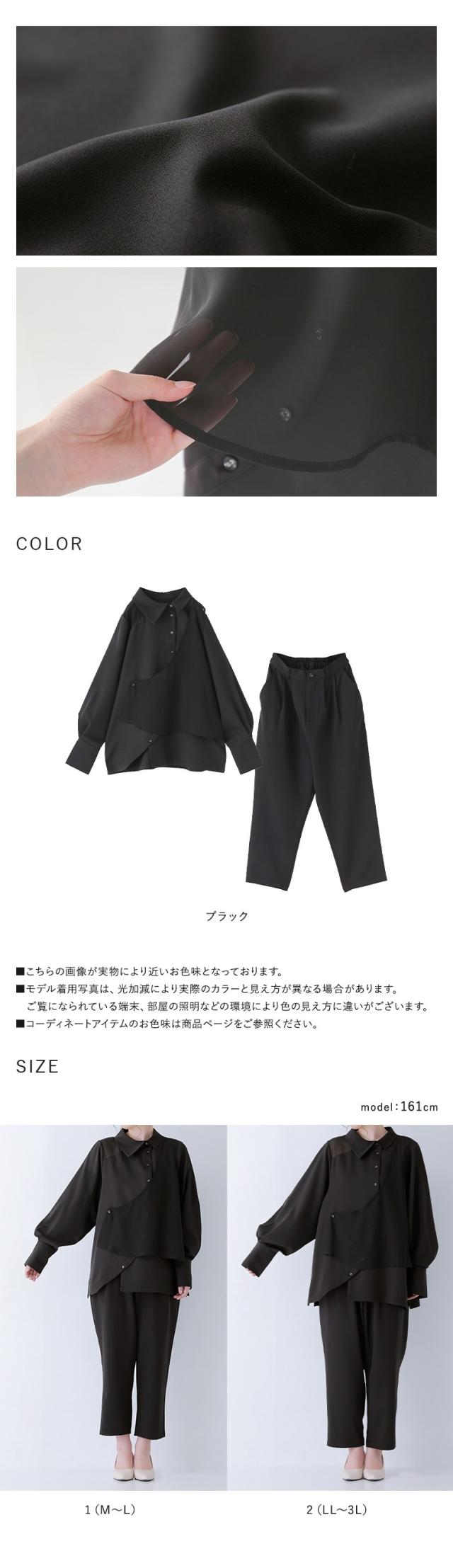 レディース 2点セット セットアップ 上下セット セパレート パンツスーツ パンツドレス トップス ブラウス シャツ ボタンシャツ 前開きシャツ 襟付きシャツ ボトムス パンツ ロングパンツ ワイドパンツ コクーンパンツ 襟付き アシメ襟 長袖 折り返し袖 ショート丈 ミドル丈 クロップド丈 ロング丈 コクーン 変形 タック ウエストゴム 切り替え アシンメトリー アシメ ポケット ジレデザイン 無地 シフォン 異素材MIX シースルー シアー 透け感 肌見せ フェイクレイヤード おうちで洗える 2way アレンジ 秋冬春 パーティー 女子会 二次会 結婚式 フォーマル オケージョン 入園式 入学式 卒園式 卒業式 学校行事 お宮参り 七五三 ママ 母 母親 ママスーツ カジュアル お出掛け 旅行 お買い物 大人女子 大人可愛い お洒落可愛い きれいめ モード シンプル ナチュラル ニュアンス ラフ Sサイズ Mサイズ Lサイズ LLサイズ 3Lサイズ ぽっちゃり 体型カバー 大きいサイズ 10代 20代 30代 40代 50代 60代 kOhAKU コハク ブラック 黒 oshareoc15 【パンツ】[ID]pjk0030