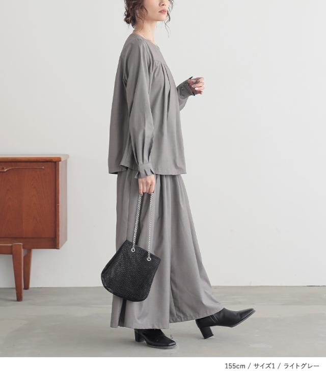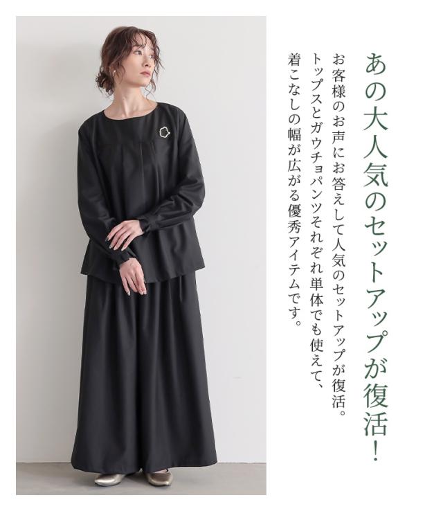 レディース 2点セット セットアップ 上下セット ツーピース トップス ブラウス プルオーバー ボトムス パンツ ロングパンツ ワイドパンツ スカンツ スカーチョ ガウチョパンツ クルーネック 長袖 クロップド丈 ロング丈 マキシ丈 フルレングス フレア タック ウエストゴム 無地 おうちで洗える 裏地付き 秋冬春 パーティー 女子会 二次会 結婚式 フォーマル オケージョン セレモニー オフィス カジュアル お出掛け 入学式 入園式 卒業式 卒園式 学校行事 お宮参り 七五三 ママスーツ 大人女子 大人可愛い お洒落可愛い 上品 きれいめ シンプル Mサイズ Lサイズ LLサイズ 3Lサイズ ぽっちゃり 体型カバー 大きいサイズ 10代 20代 30代 40代 50代 60代 n'OrLABEL ノア—ルレーベル グレー 灰色 ライトグレー ブラック 黒 occasion[ID]pjn0074[n'OrLABELタックデザインガウチョセットアップ]