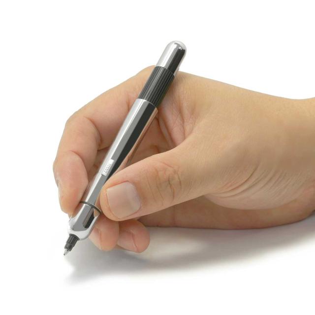 延伸機能付きで、収納時の約92mmから一度のノックで約123mmのボールペンになる機能は世界特許を取得しています。