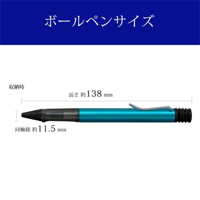 ベストセラー「ラミー サファリ」のボディをアルミ製にした人気モデルです。くぼみ付きのグリップやワイヤー式クリップなど、「ラミー サファリ」の特徴を踏襲しながら、ボディは若干太く仕上げられ、大人のユーザーがビジネスや生活の場で常用するのに適した仕様となっています。